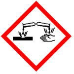 H314 – Causes severe skin burns and eye damage – A category 1 hazard with the following GHS hazard pictograms:
